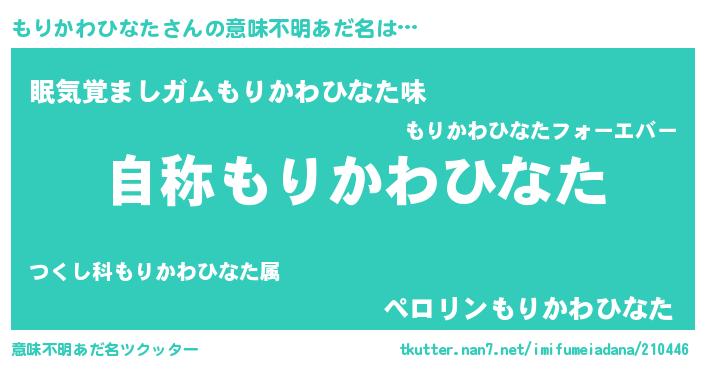 | 男性向けラノベタイトル風あだ名 | 『魔法科高校のもりかわひなた』 |
