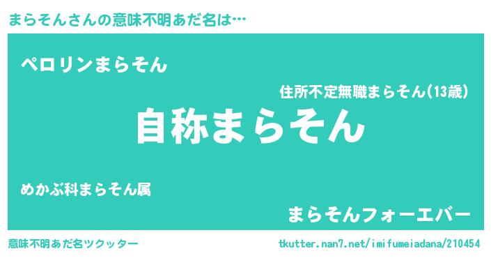 | ヘコむあだ名 | 『まらにゅー』『なまこ酢』 |