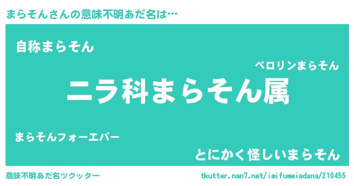 | 胡散臭い通販商品みたいなあだ名 | 『芸能人もオススメする高麗人参…その名も「まらそん」』 |