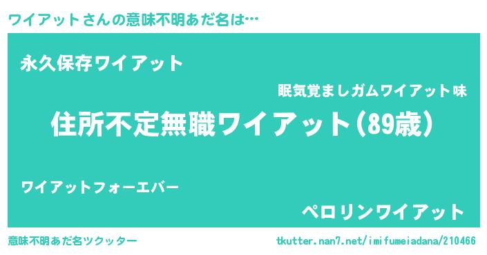 | 男性向けラノベタイトル風あだ名 | 『この素晴らしい世界にワイアットを!』 |
