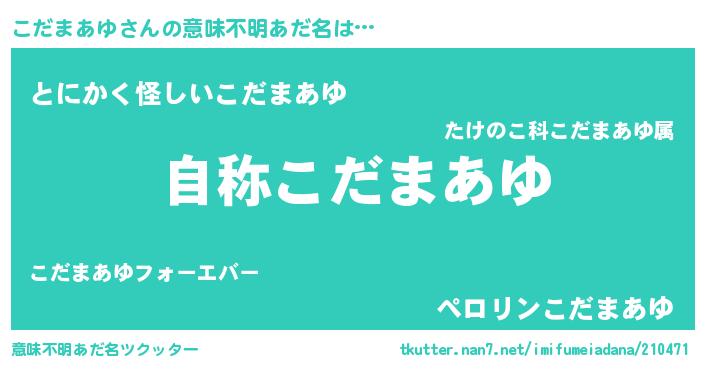 | 肩書あだ名 | 『こだまあゆ総統』『こだまあゆ塾長』 |
