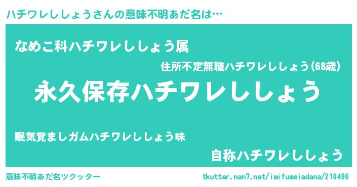 | ヘコむあだ名 | 『ハチワレししょう(笑)』『ハチにゅー』 |