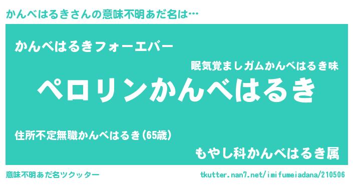 | 男性向けラノベタイトル風あだ名 | 『カンベハルキアートオンライン』 |