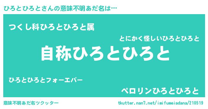 | ヒーロー風カッコイイあだ名 | 『最強戦士ヒロトヒロト』『銀牙騎士ヒロ』 |