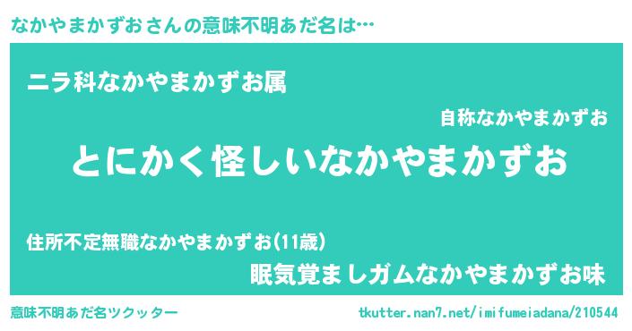 | 男性向けラノベタイトル風あだ名 | 『ダンジョンになかやまかずおを求めるのは間違っているだろうか』 |