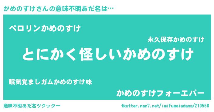 | ヒーロー風カッコイイあだ名 | 『暗黒騎士カメ』『スーパーカメノスケ』 |
