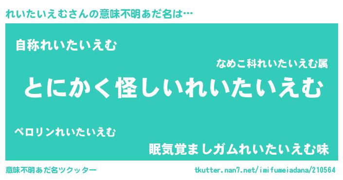 | ヘコむあだ名 | 『れい太郎』『れいにゅー』『豆乳』 |