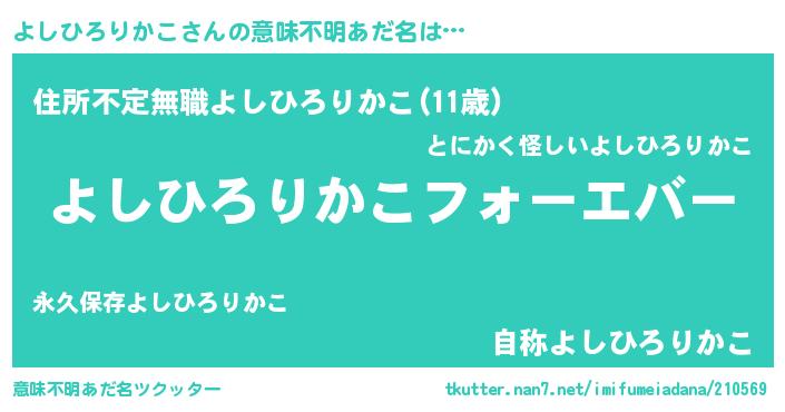 | ファンタジー風あだ名 | 『エターナルヨシヒロリカコー』 |