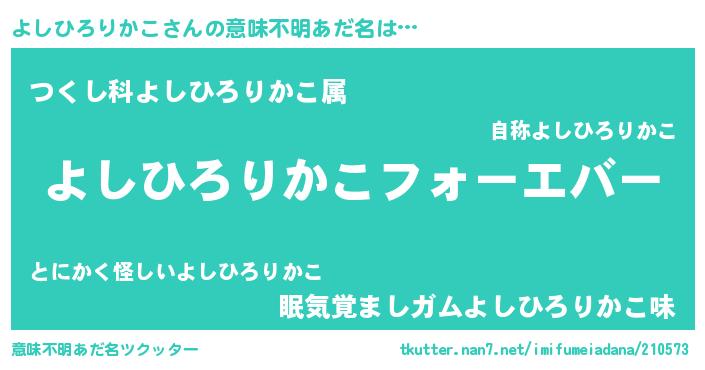 | 女子向けラノベタイトル風あだ名 | 『よしひろりかこの雑貨屋さん』 |