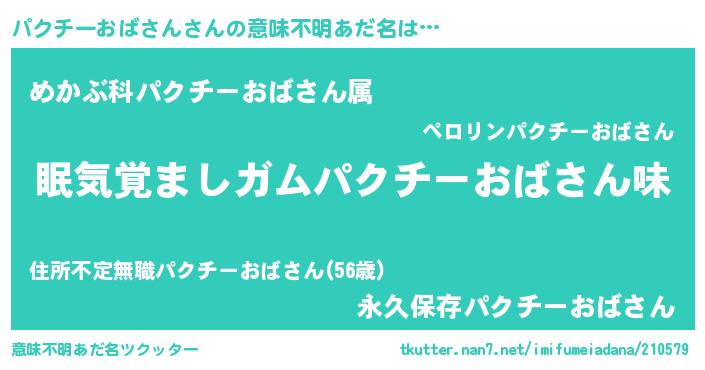 | ヘコむあだ名 | 『パクチーおばさん(爆)』『パクにゅー』 |