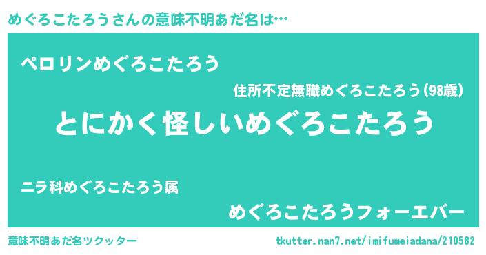 | 男性向けラノベタイトル風あだ名 | 『めぐろこたろうに滅ぼされるだけの簡単なお仕事です』 |