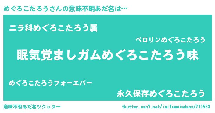 | 男性向けラノベタイトル風あだ名 | 『ノーゲーム・ノーメグロコタロウ』 |