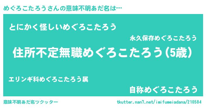 | 男性向けラノベタイトル風あだ名 | 『めぐろこたろうに滅ぼされるだけの簡単なお仕事です』 |