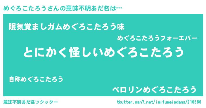 | 男性向けラノベタイトル風あだ名 | 『めぐろこたろうの嫁は女の子じゃないと思った?』 |