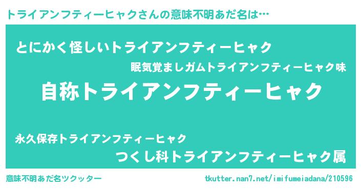 | ヒーロー風カッコイイあだ名 | 『ウルトラ戦士トライアンフティーヒャク』 |