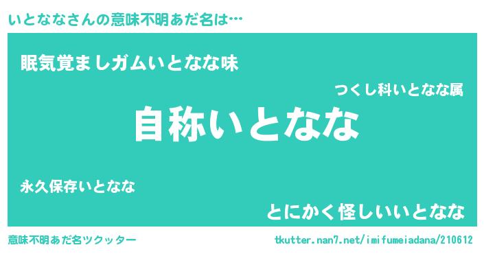 | 女子向けラノベタイトル風あだ名 | 『いとなななんてお断りですっ。』 |