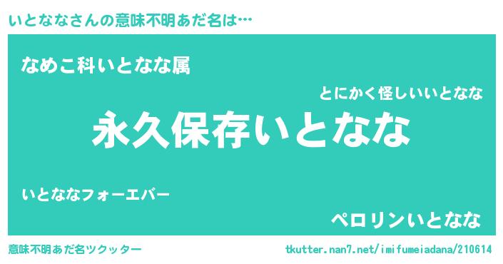 | 女子向けラノベタイトル風あだ名 | 『異世界でカフェいとななを開店しました。』 |