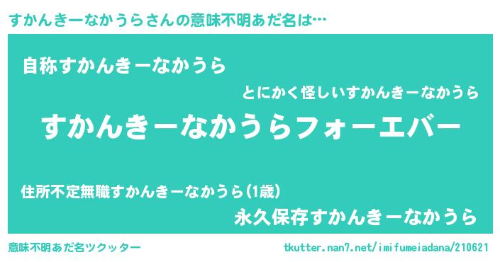 | 胡散臭い通販商品みたいなあだ名 | 『運命の人と巡り会える高級そうな壺…その名も「すかんきーなかうら」』 |