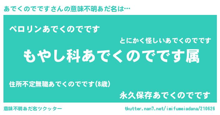 | 肩書あだ名 | 『あでくのでです上級大将』 |