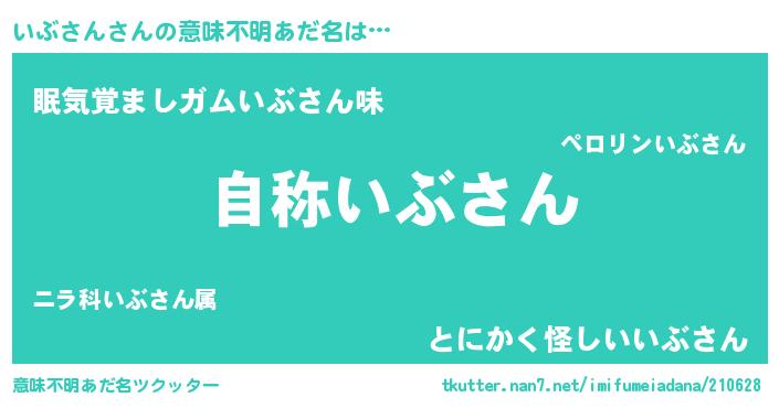 | 女子向けラノベタイトル風あだ名 | 『いぶさんストレイドッグス』 |