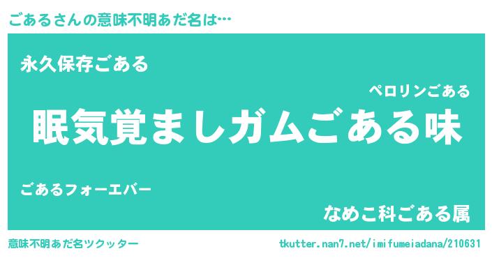 | 自動車の名前っぽいあだ名 | 『ゴンR』『デミゴ』『ゴールスアイス』 |