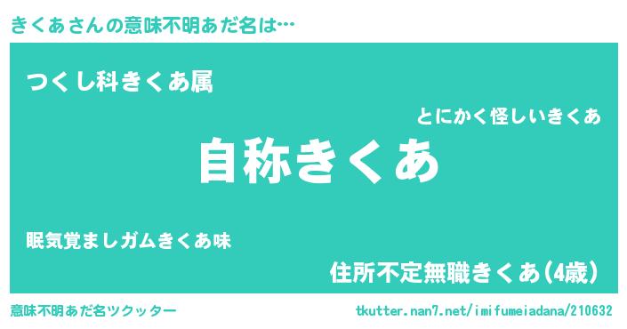| 女子向けラノベタイトル風あだ名 | 『きくあなんてお断りですっ。』 |