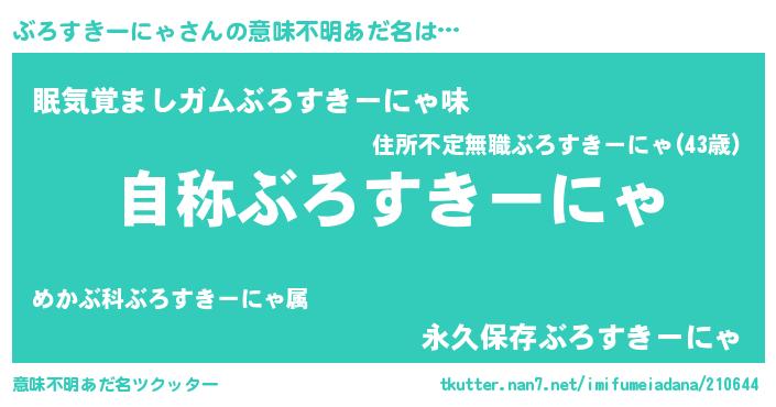 | ヘコむあだ名 | 『ぶろすきーにゃ(笑)』『ぶろっぺ』 |