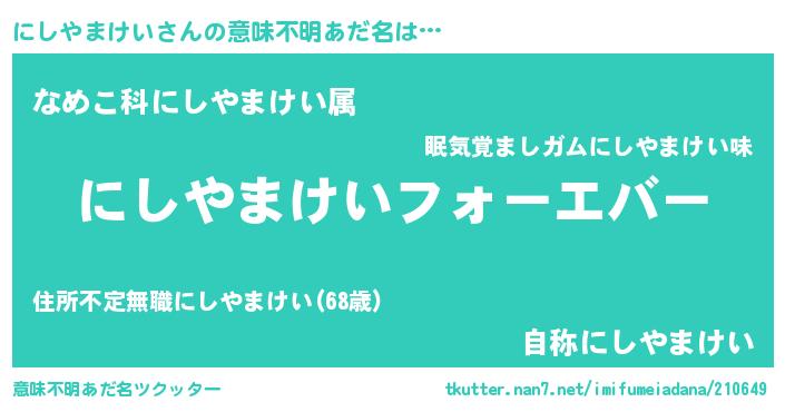 | ファンタジー風あだ名 | 『エターナルニシヤマケイー』 |