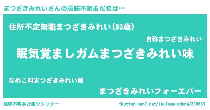| ヒーロー風カッコイイあだ名 | 『慈愛の使者まつざきみれい』 |