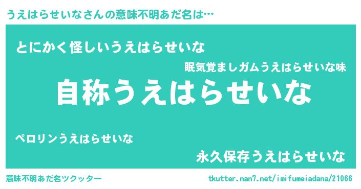 | 胡散臭い通販商品みたいなあだ名 | 『テレビで話題のアガリクス…その名も「うえはらせいな」』 |