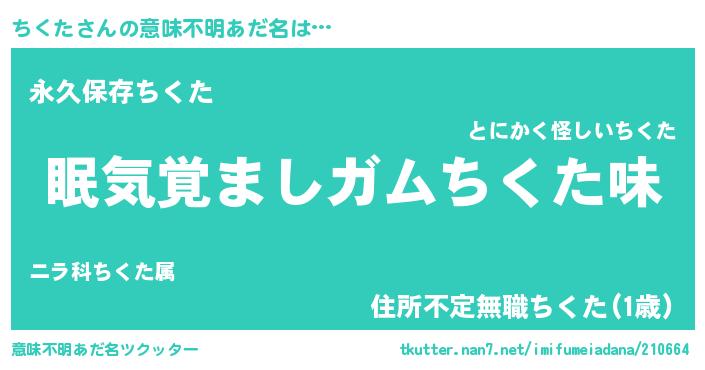 | ヒーロー風カッコイイあだ名 | 『正義の使者ちくた』『ネオチクタ』 |