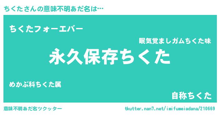 | ヒーロー風カッコイイあだ名 | 『ネオチクタ』『ウルトラちくたマン』 |