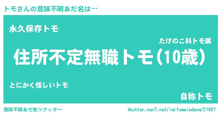 | 男性向けラノベタイトル風あだ名 | 『この素晴らしい世界にトモを!』 |