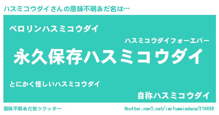 | ヘコむあだ名 | 『ハスミコウダイ(笑)』『ハスもー』 |