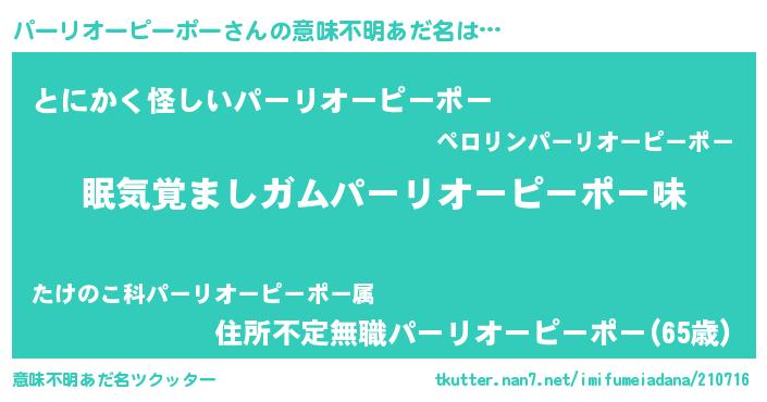 | 料理風あだ名 | 『パーリオーピーポーの炊き込みご飯』 |