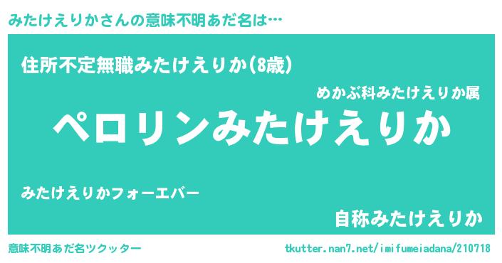 | 男性向けラノベタイトル風あだ名 | 『ミタケエリカアートオンライン』 |