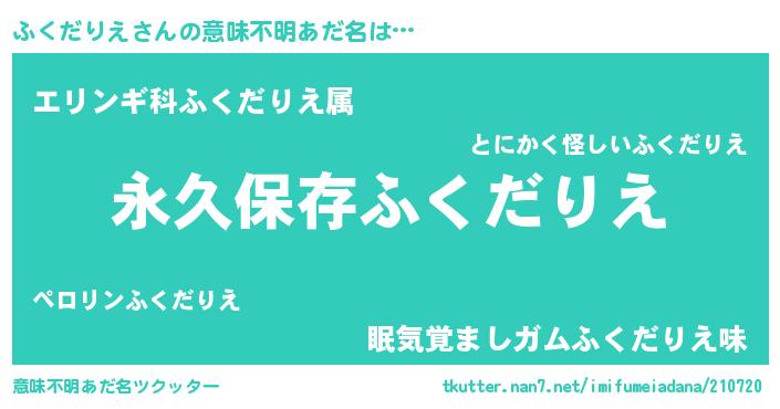| 男性向けラノベタイトル風あだ名 | 『誰もが恐れるあのふくだりえが、ぼくの専属メイドになるようです。』 |