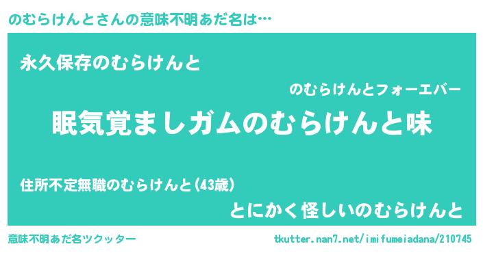 | ヘコむあだ名 | 『のむらけんと(爆)』『のむぷりん』 |