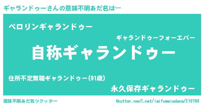 | ヘコむあだ名 | 『ギャにー』『ギャランドゥー(苦笑)』 |