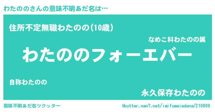 | ファンタジー風あだ名 | 『エターナルワタノノー』 |
