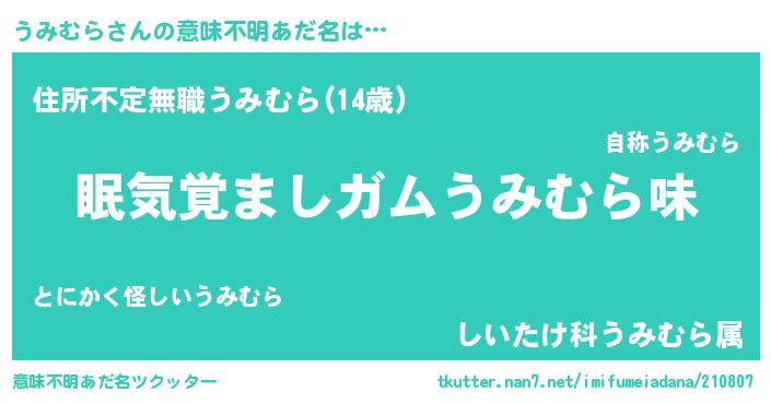 | 男性向けラノベタイトル風あだ名 | 『はたらくうみむらさま!』 |