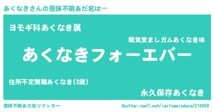 | ヘコむあだ名 | 『酢こんぶ』『あくなき(小並感)』 |