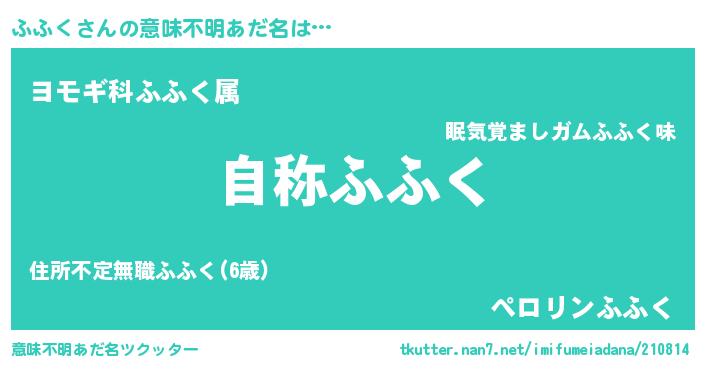| 男性向けラノベタイトル風あだ名 | 『Re:ふふくから始める異世界生活』 |
