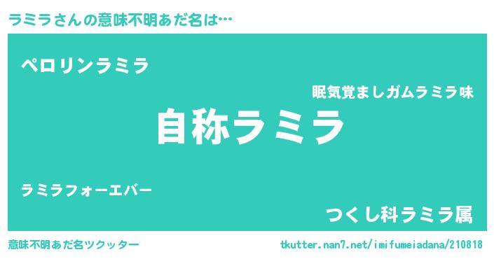 | ヘコむあだ名 | 『ラミもー』『牛乳』『ラミラ(笑)』 |