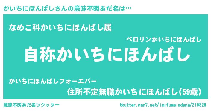 | ヒーロー風カッコイイあだ名 | 『ウルトラ戦士カイチニホンバシ』 |