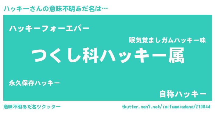 | 女子向けラノベタイトル風あだ名 | 『ハッキーの玉の輿計画!』 |