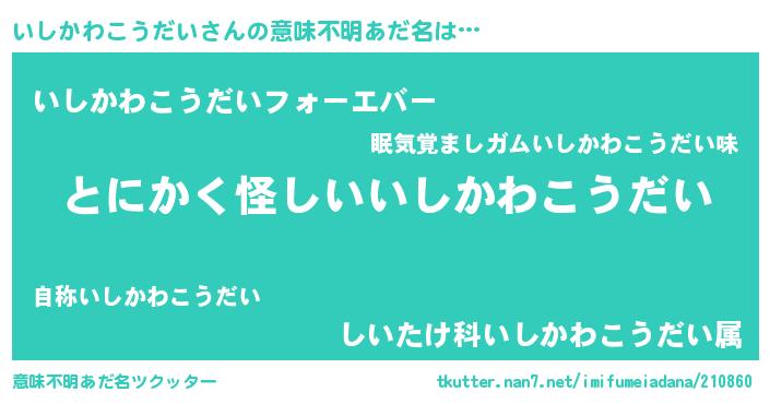 | ポケモン風あだ名 | 『ヒイシカワコウダイ』『イシカダネ』 |