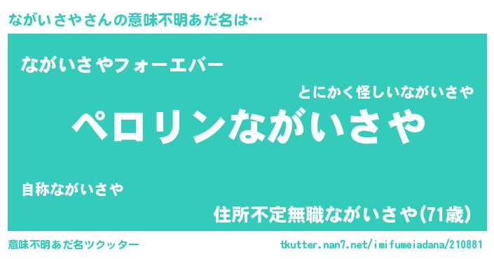 | 男性向けラノベタイトル風あだ名 | 『ナガイサヤアートオンライン』 |