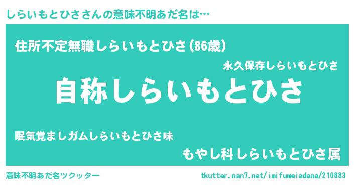 | 肩書あだ名 | 『しらいもとひさ総統』 |