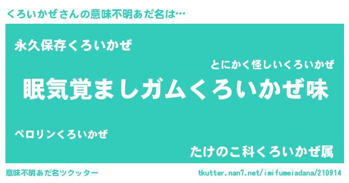| 男性向けラノベタイトル風あだ名 | 『おまえをオタクにしてやるから、俺をくろいかぜにしてくれ! 』 |